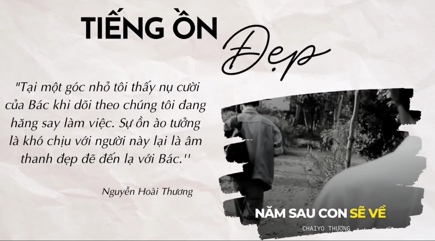 Câu chuyện kể về một diễn viên trẻ đang trên phim trường bận rộn, bất chợt nhận ra những âm thanh ồn ào xung quanh lại là hồi ức quý giá với một người từng hoạt động nghệ thuật. Bài viết nhẹ nhàng truyền tải thông điệp: “Biết lắng nghe những âm thanh quanh ta cũng là cách trân trọng hiện tại và quá khứ.”